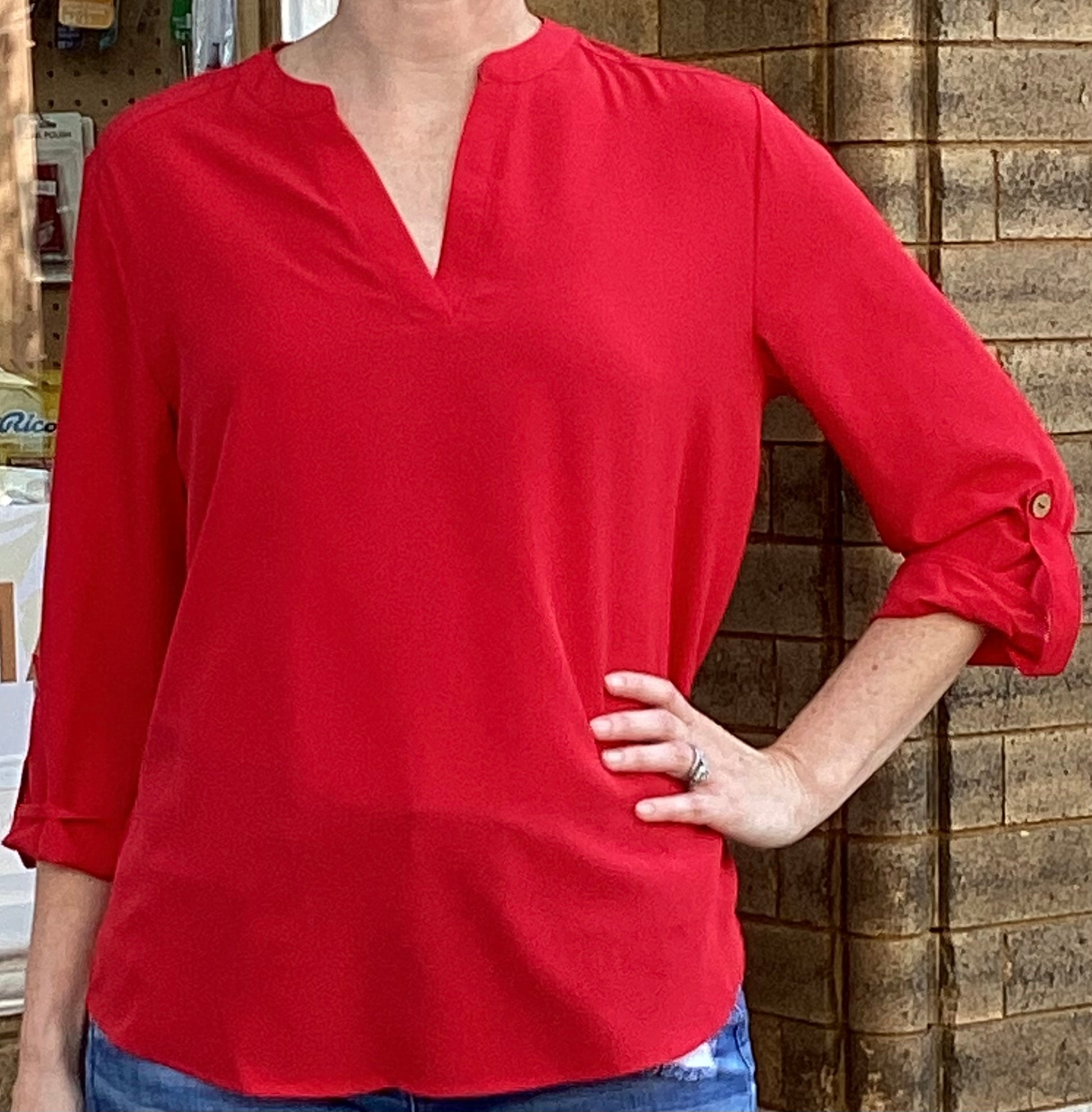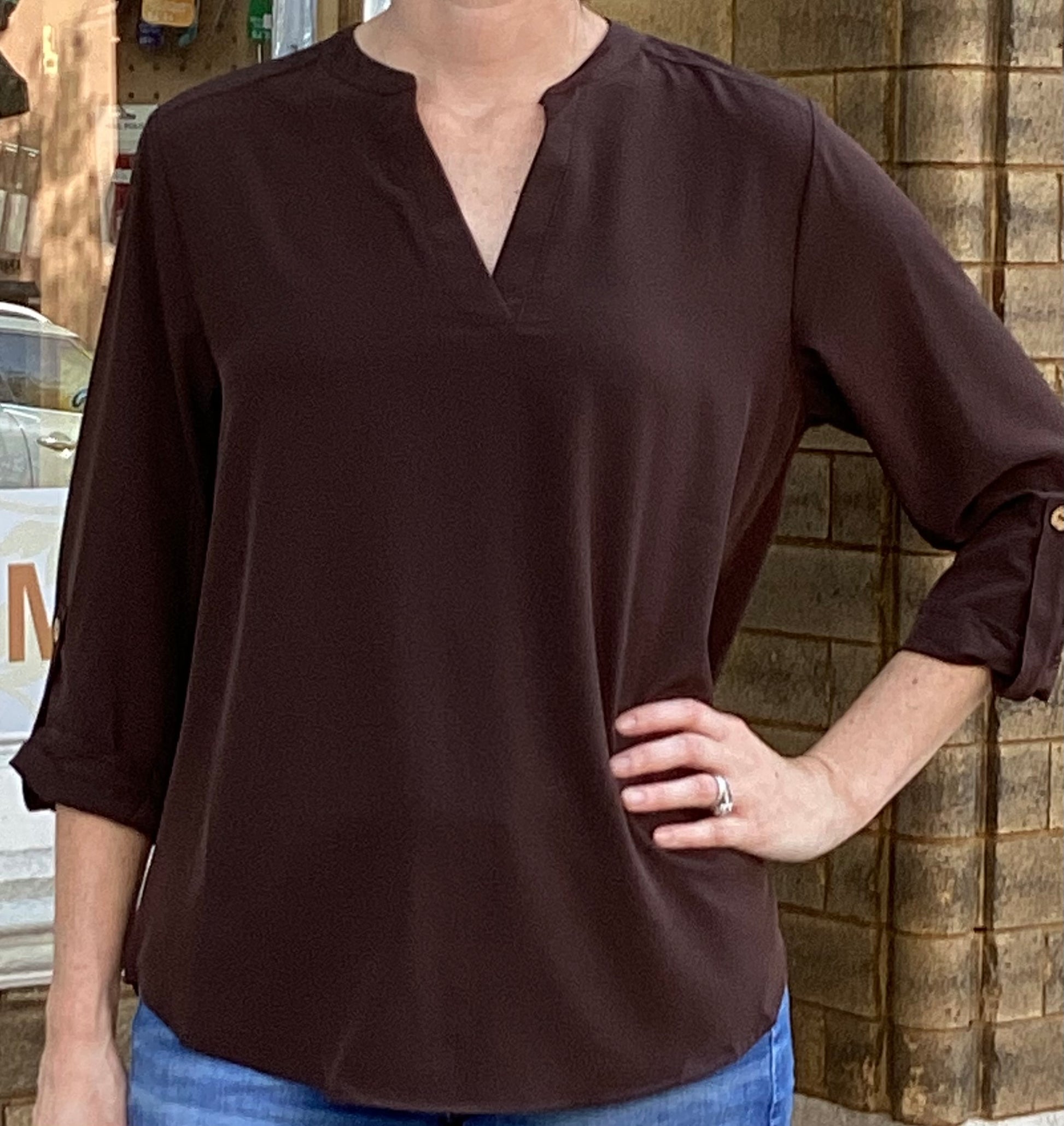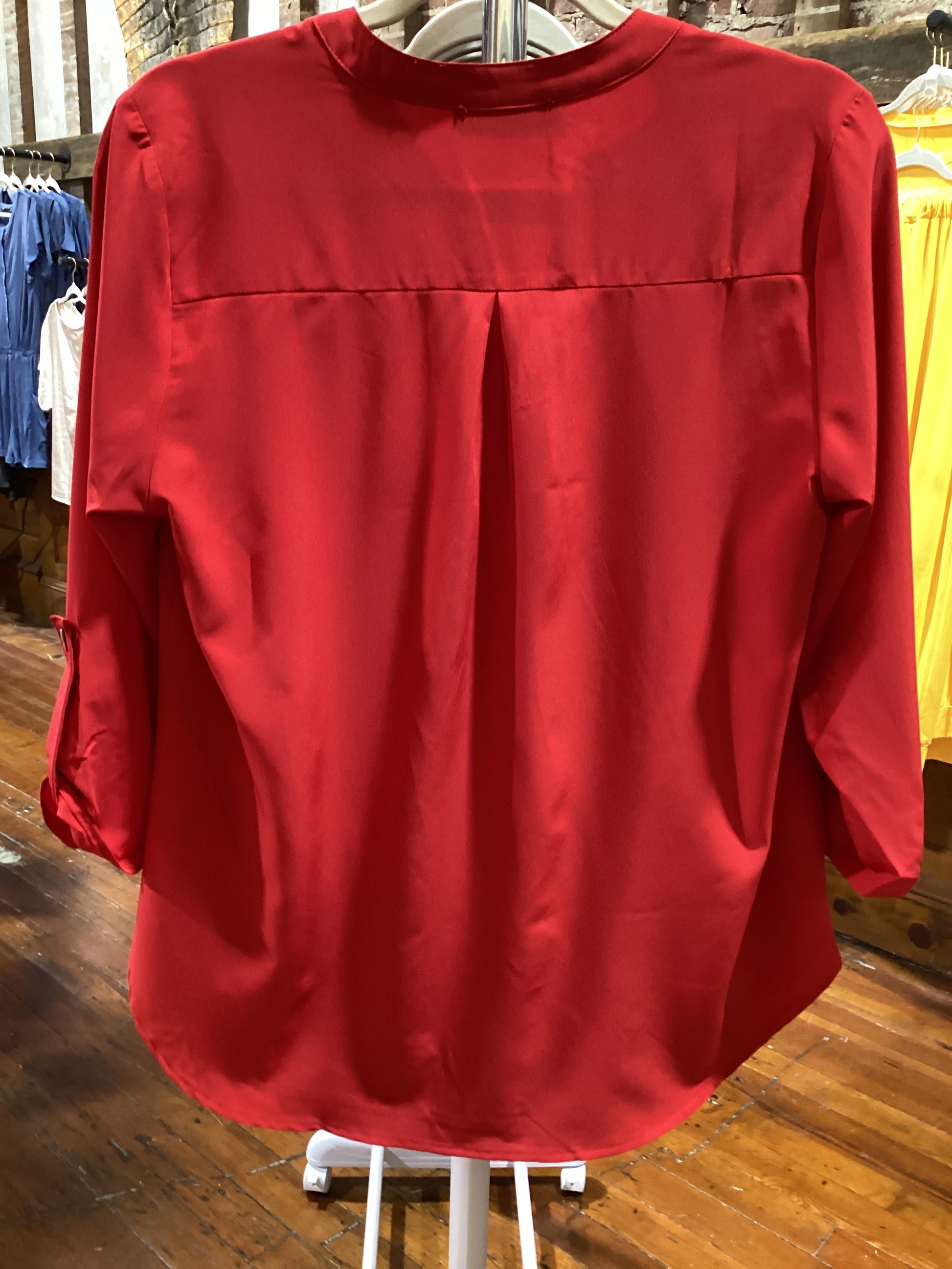 Chiffon V-Neck Blouse(Black,Brown,Red,Navy)