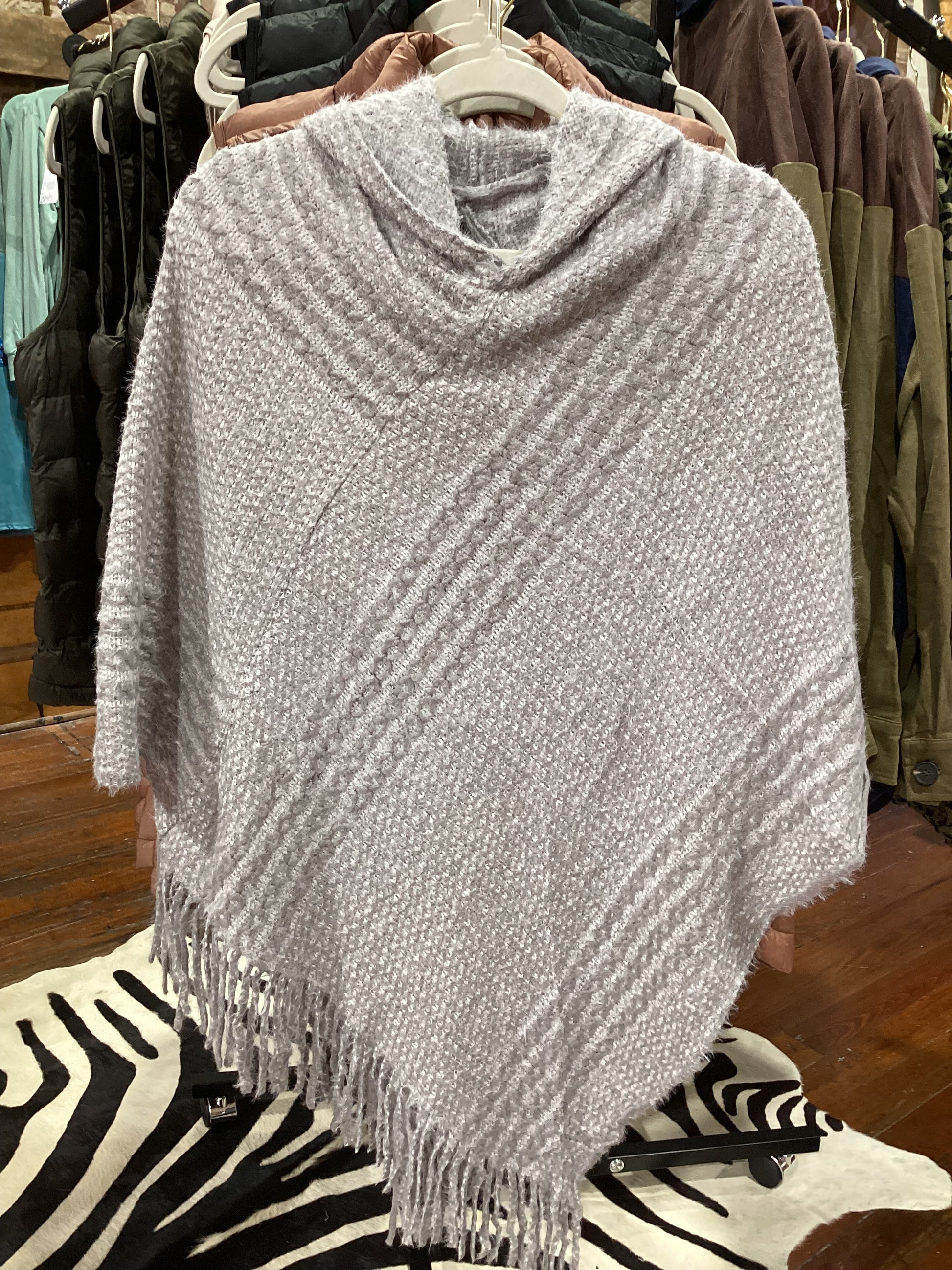 Chloe & Lex Fringed Grey Hooded Poncho