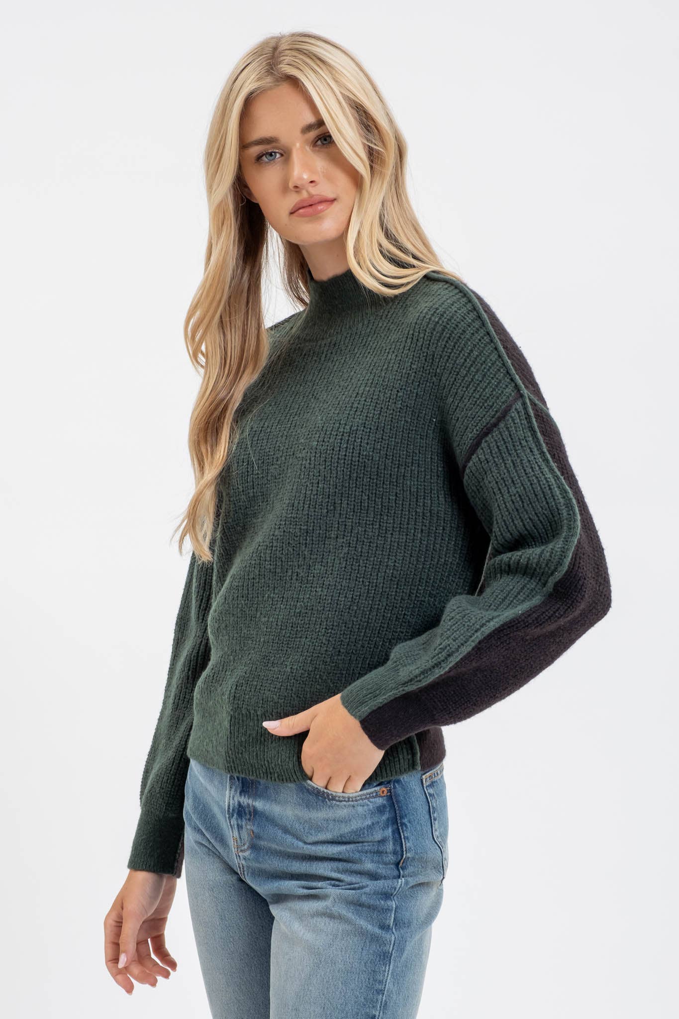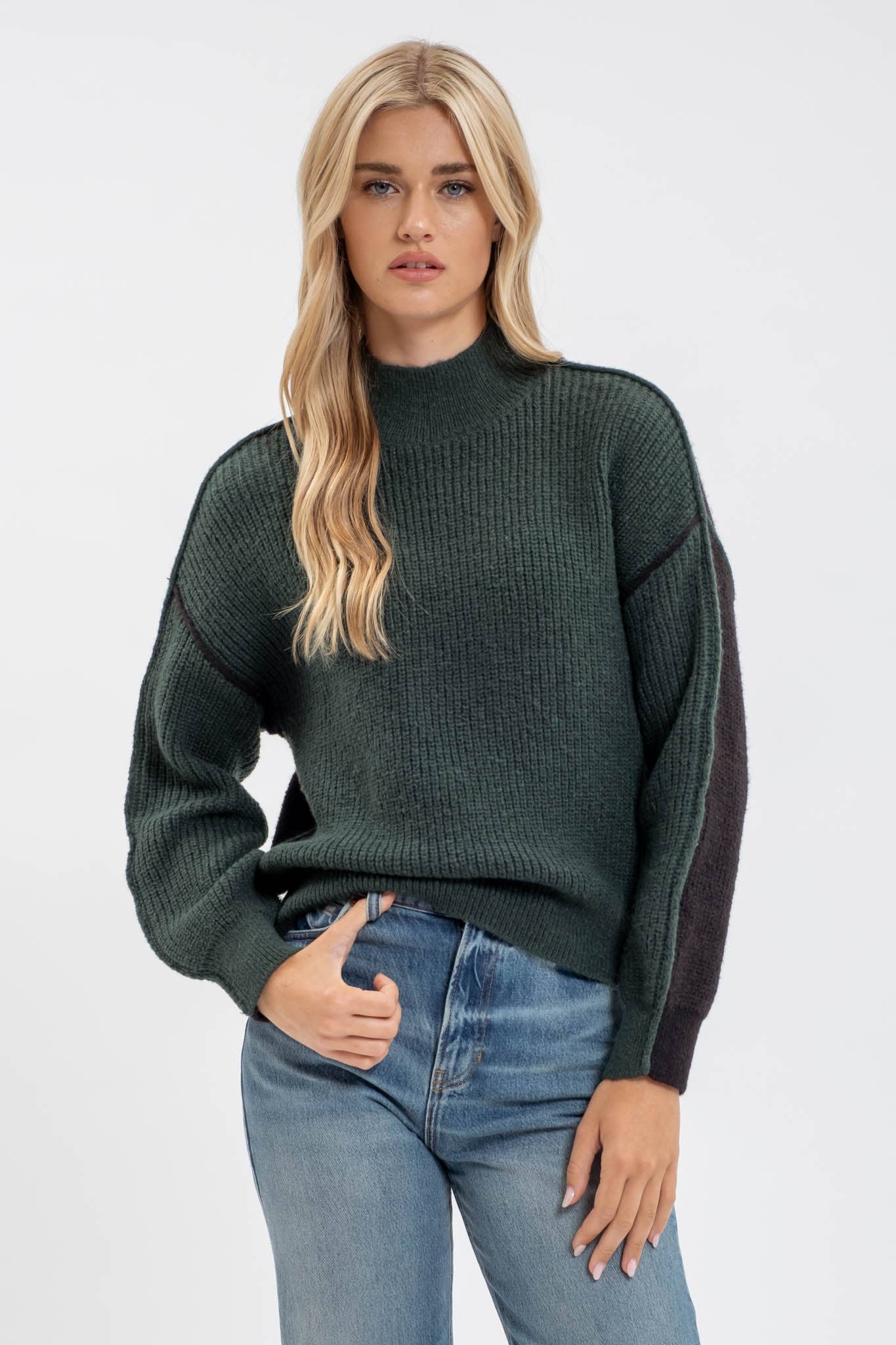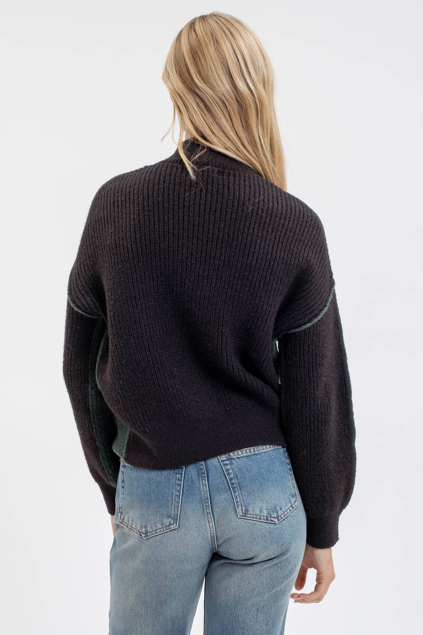 Blu Pepper Colorblock Mock Neck Exposed Seam Knit Sweater