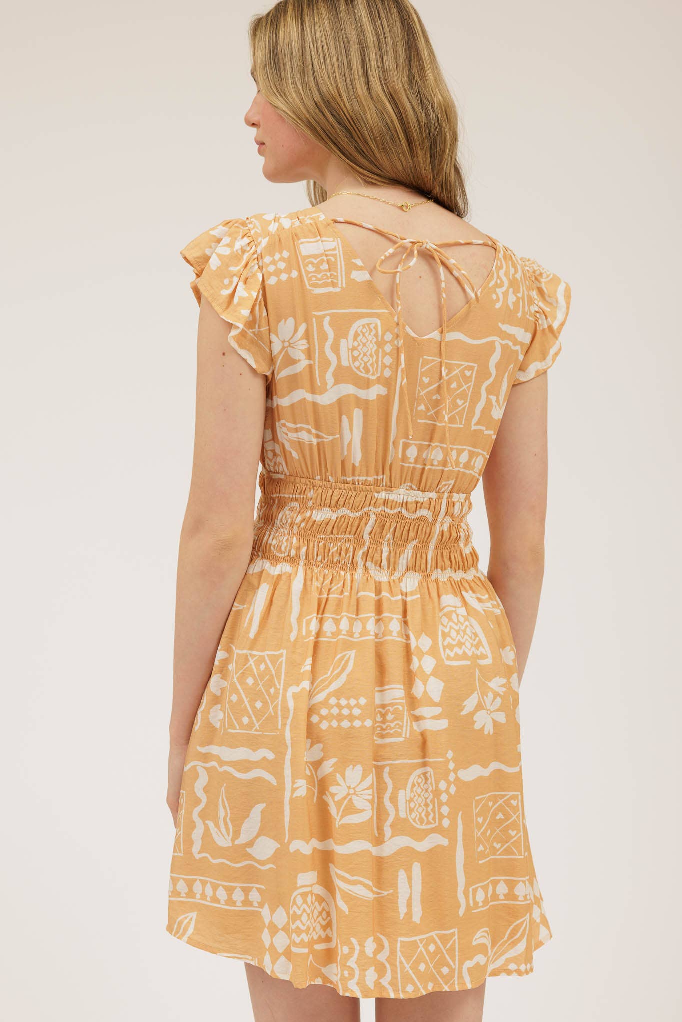 Blu Pepper Print V Neck Ruffle Mini Dress