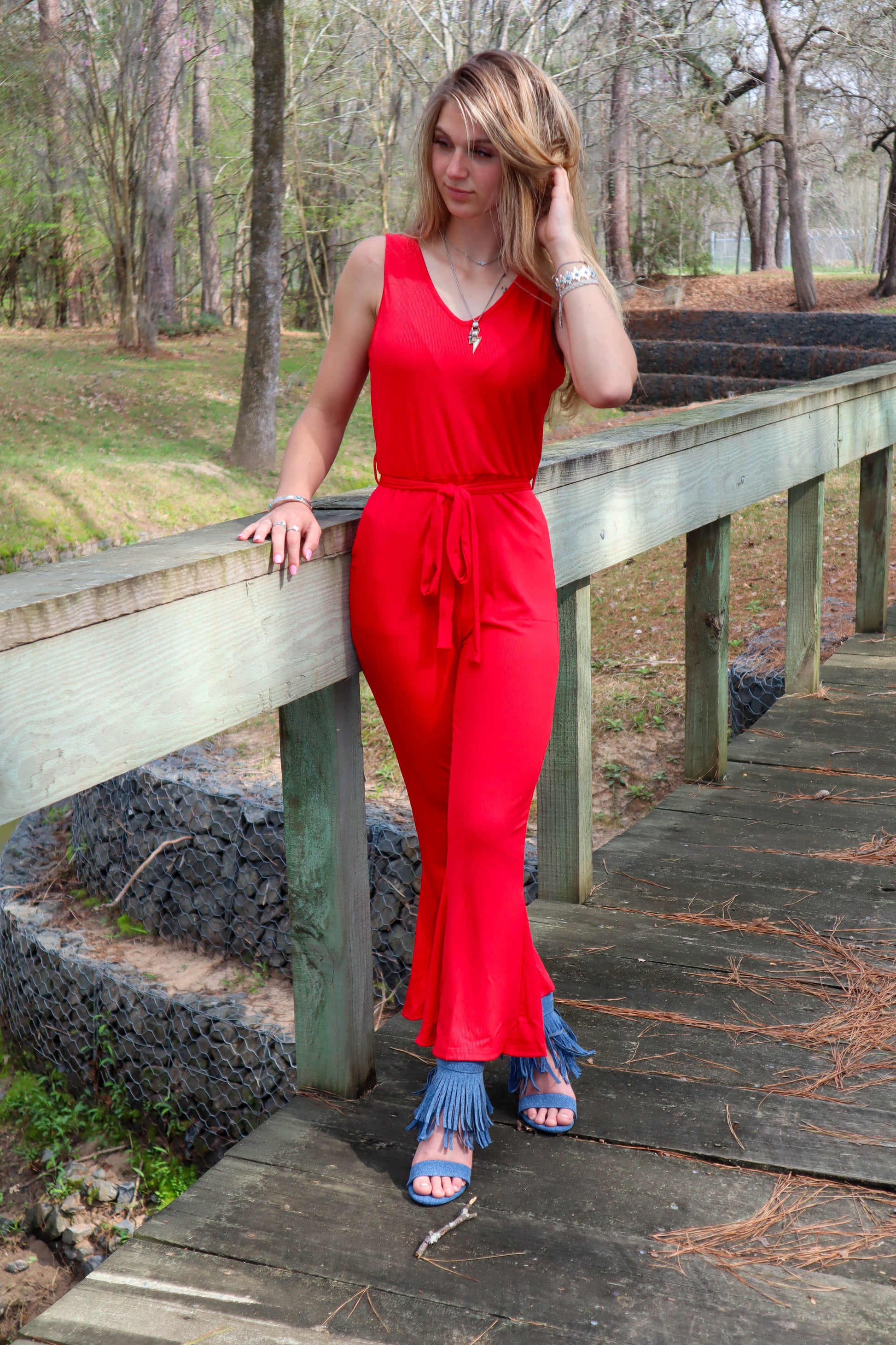Merigold Kiss Jewel Flare Leg Ribbed Jumpsuit