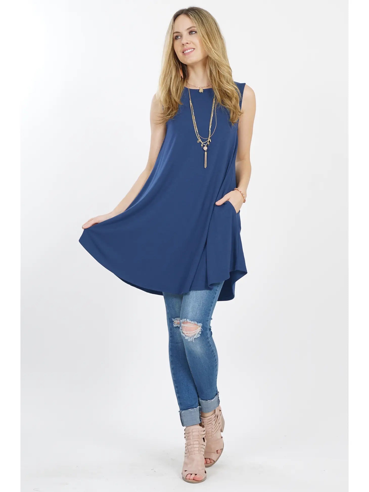 Navy Zenana Premium Sleeveless Pocket Swing Tunic with Pockets
