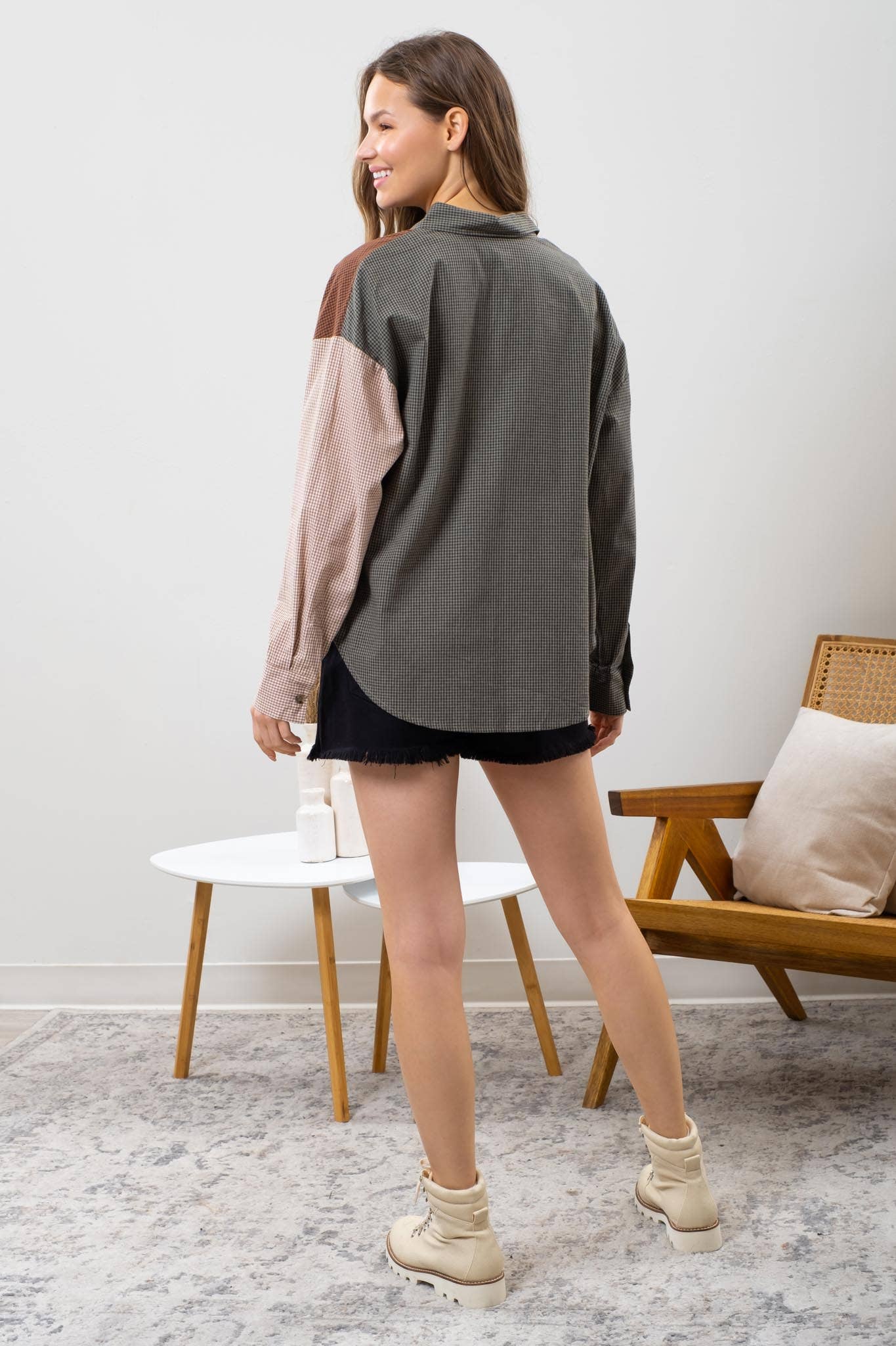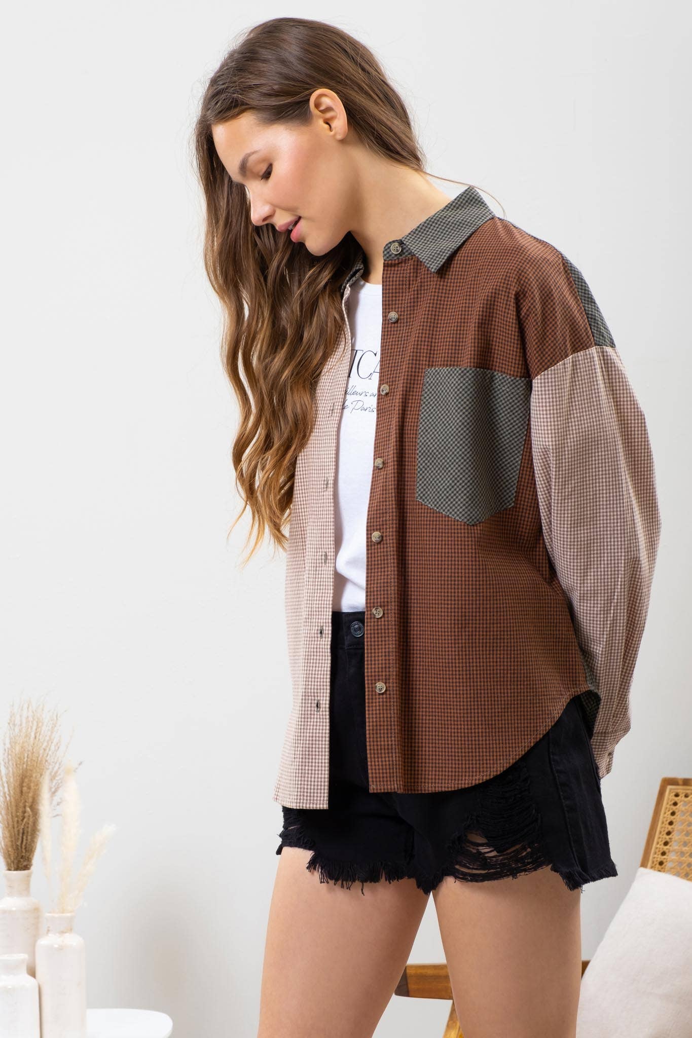 Blu Pepper Plaid Colorblock Button Down Top