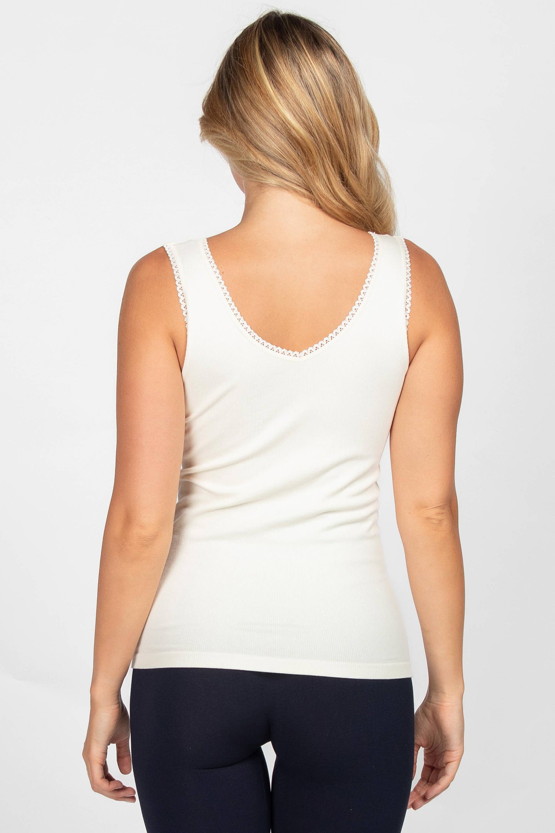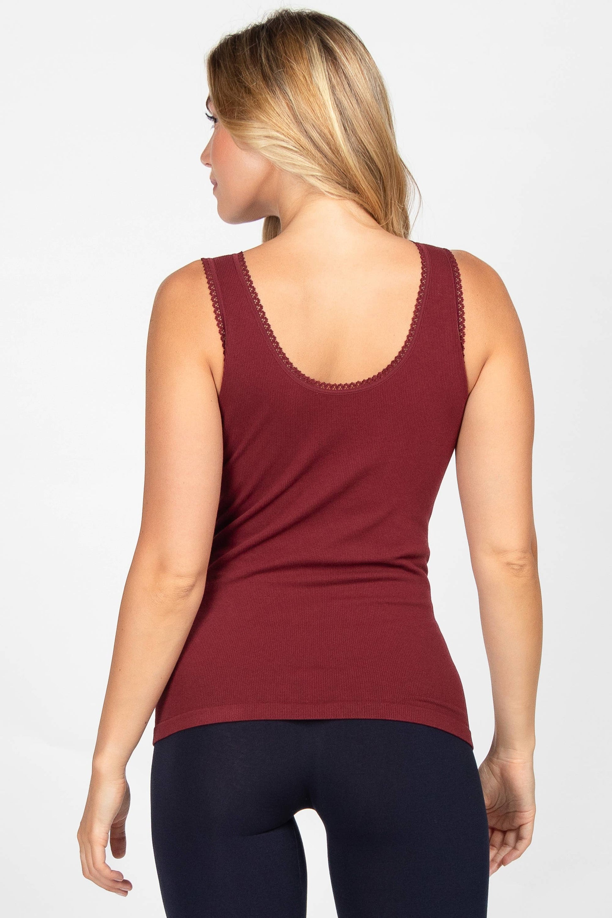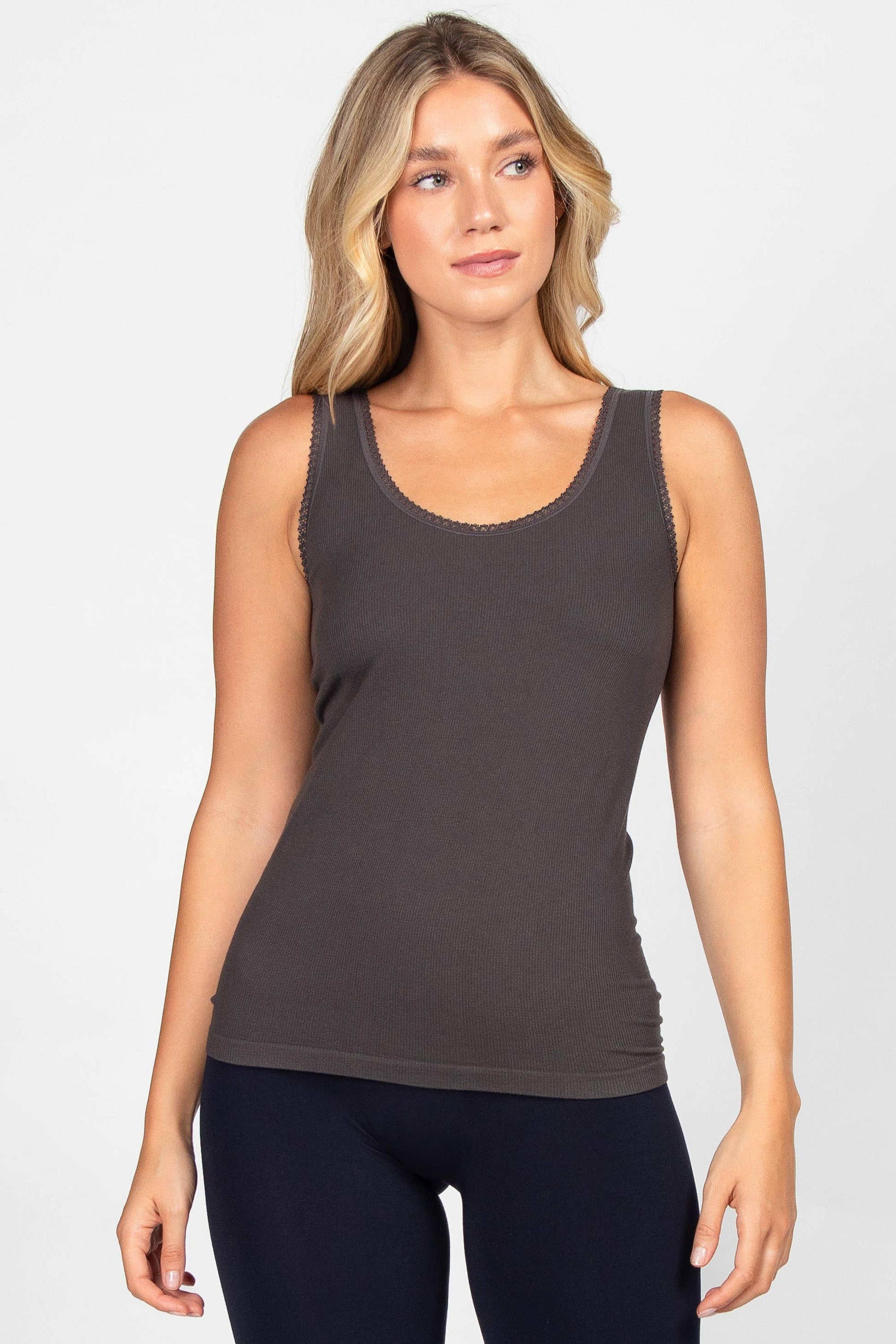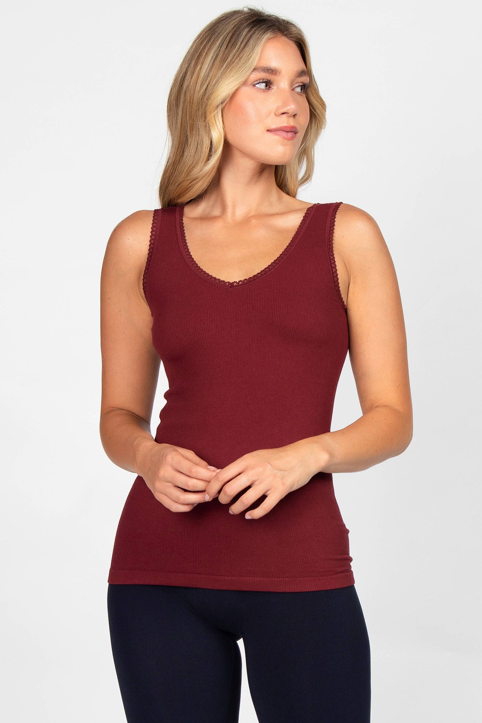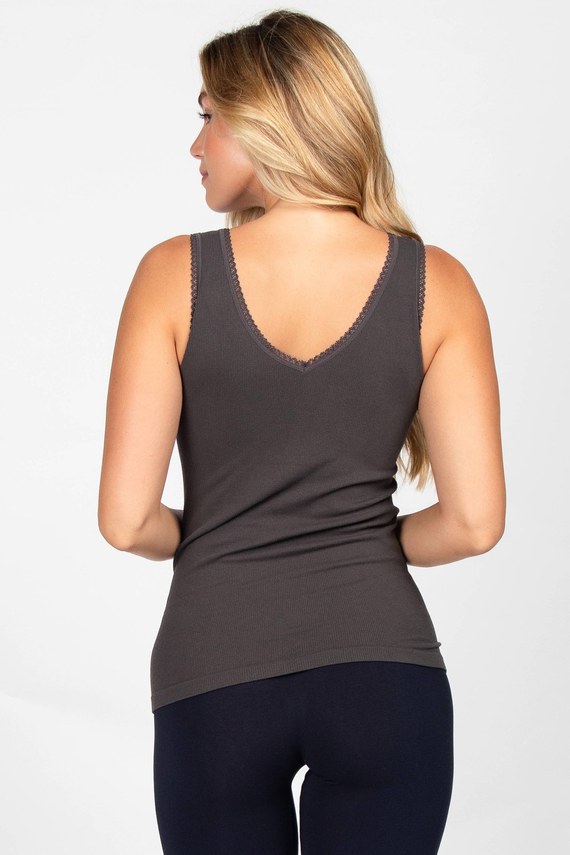 Ribbed Reversible V-Scoop Tank with Lace Trim