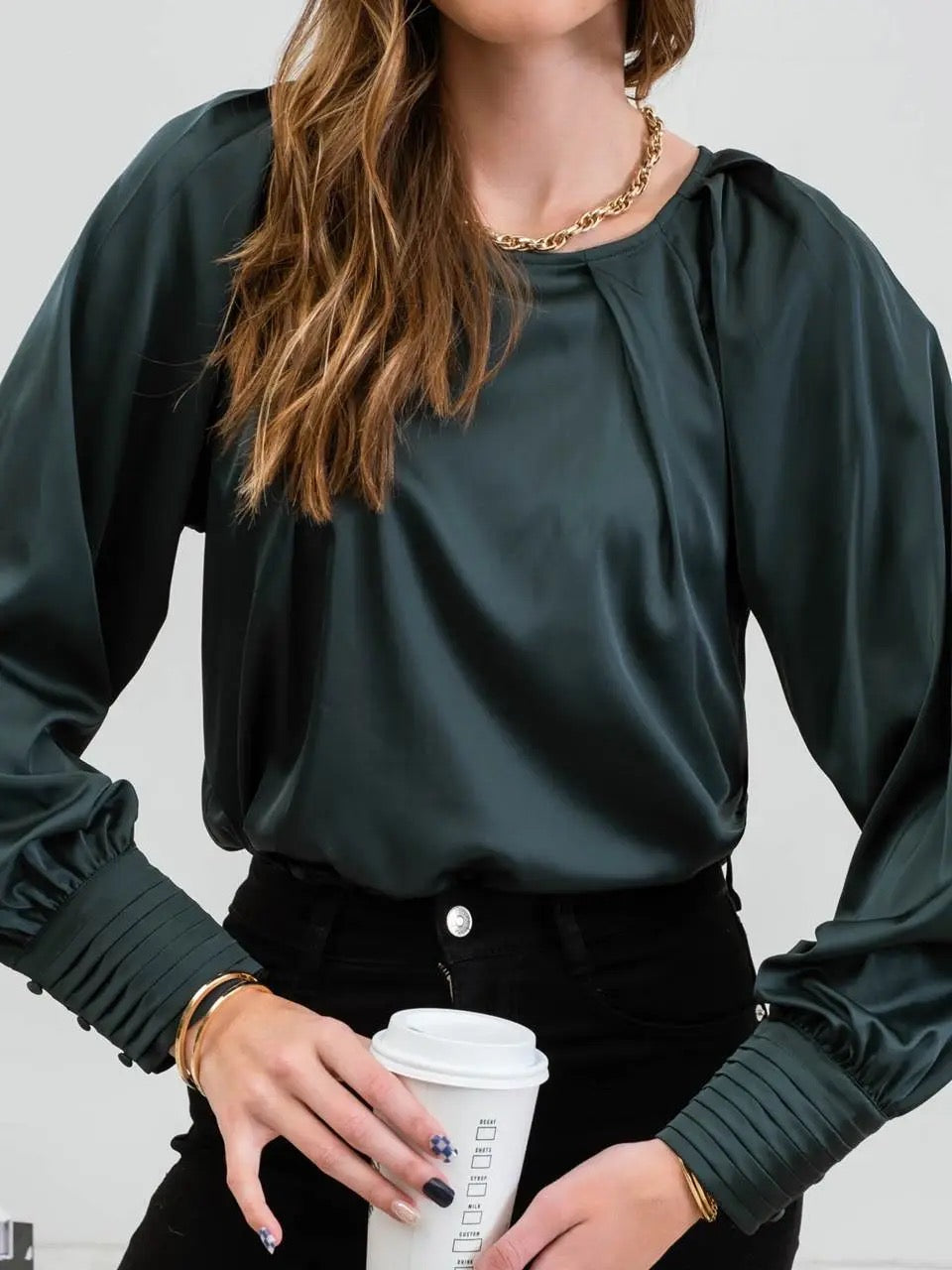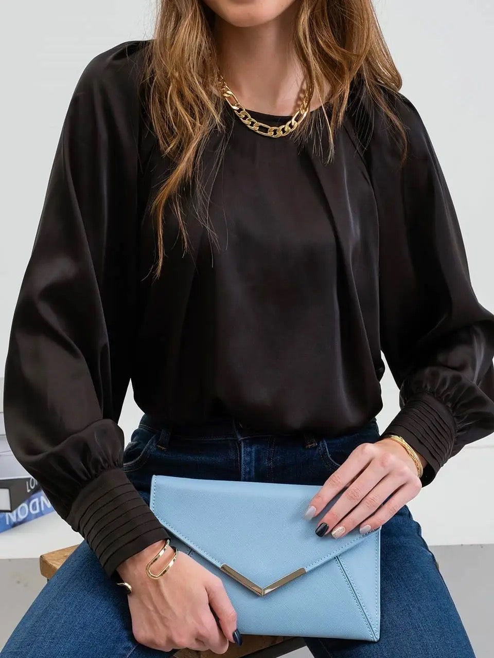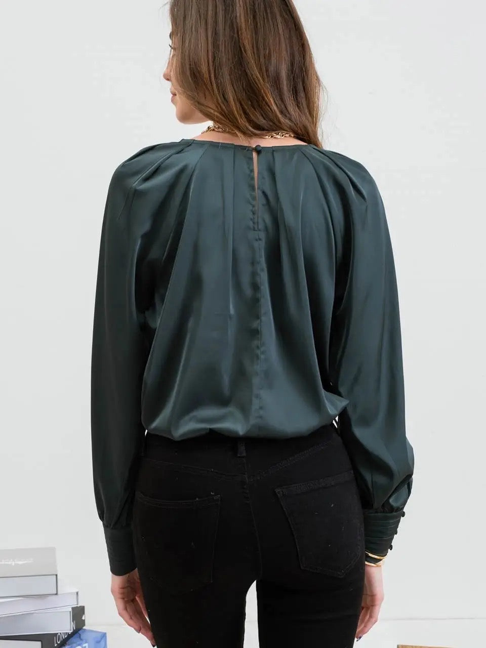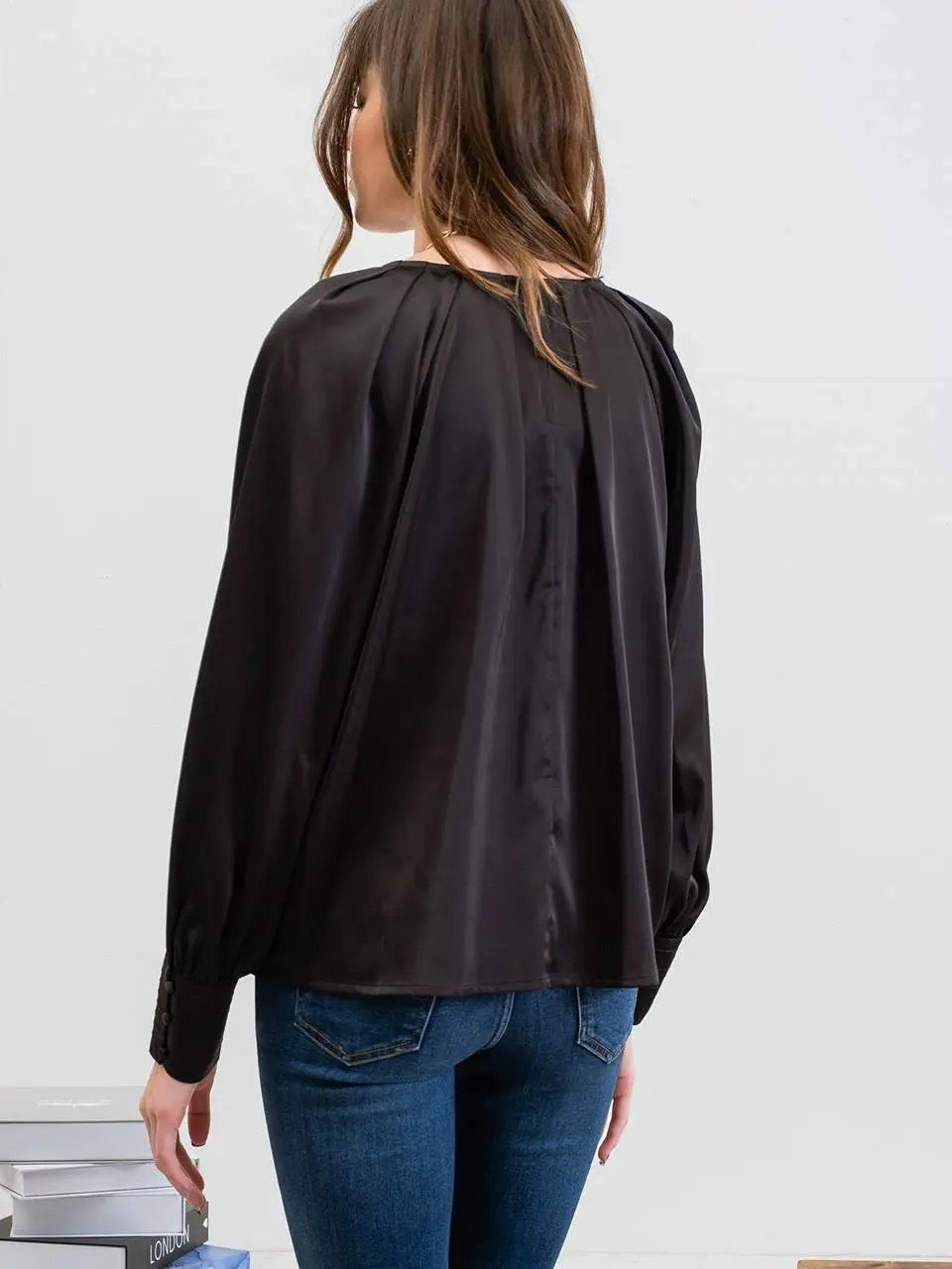 Blu Pepper Silk Long Sleeve Bishop Top