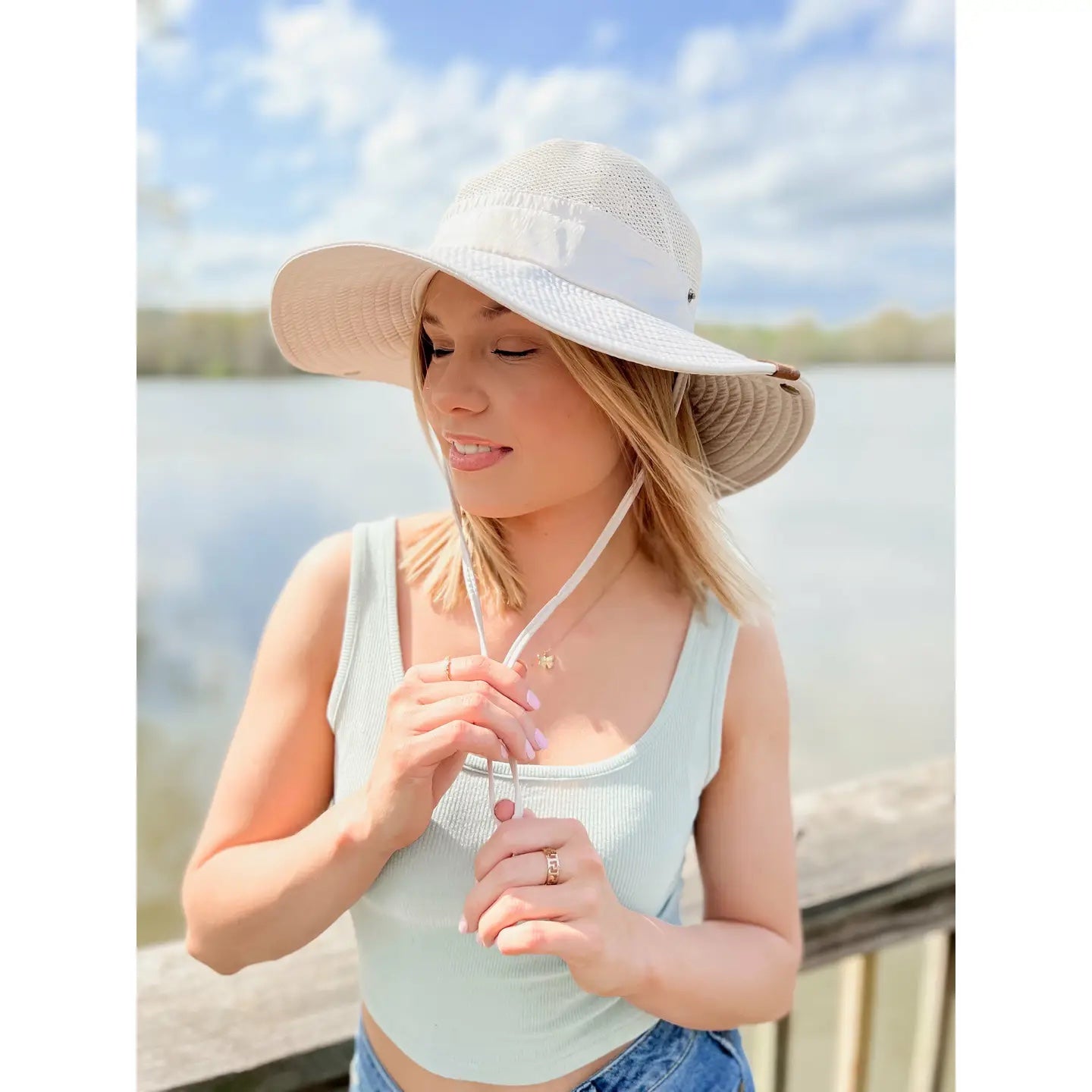 CC Beanie Wide Brim Adjustable Beige Sun Hat