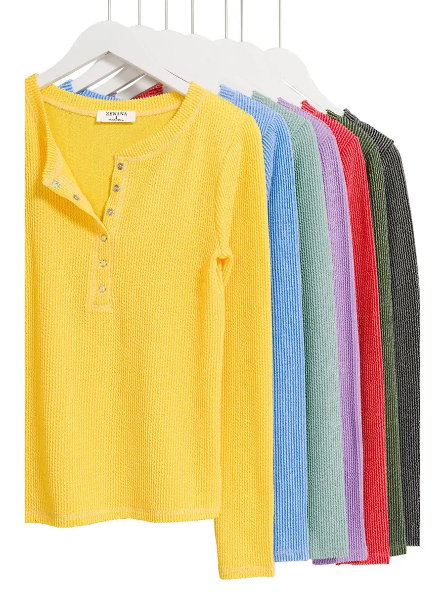 Yellow Zenana Textured Snap Button Front Long Sleeve Top
