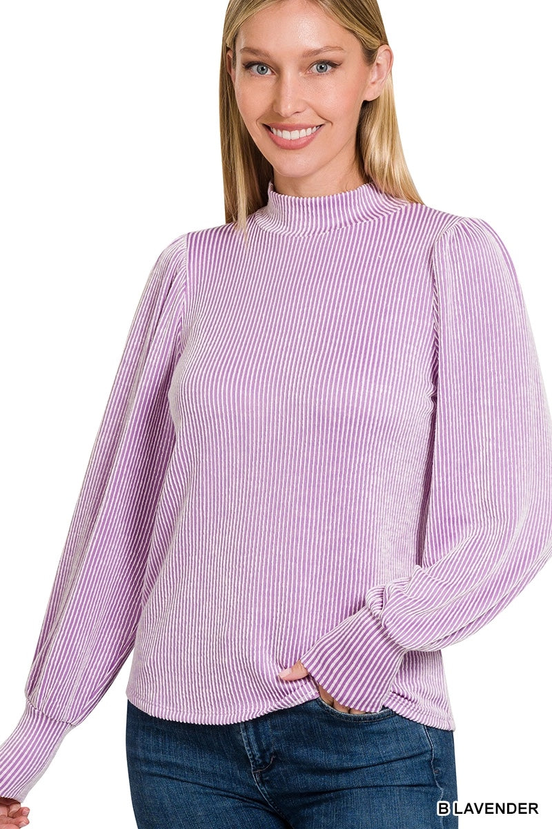 Zenana Ribbed Mock Neck Puff Long Sleeve Top