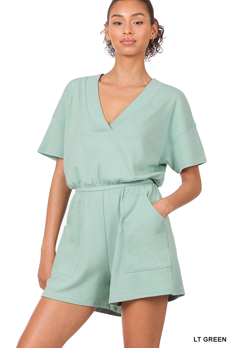 Zenana V Neck Romper with Pockets